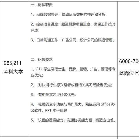 职位要求本科及以上学历,市场营销或相关专业,具备较强的市场敏感度、沟通协调能力和团队协作精神。